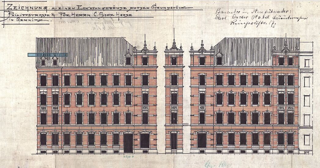 Historische Ansicht der Philippstraße 21, erbaut 1902 für Carl Oscar Haase